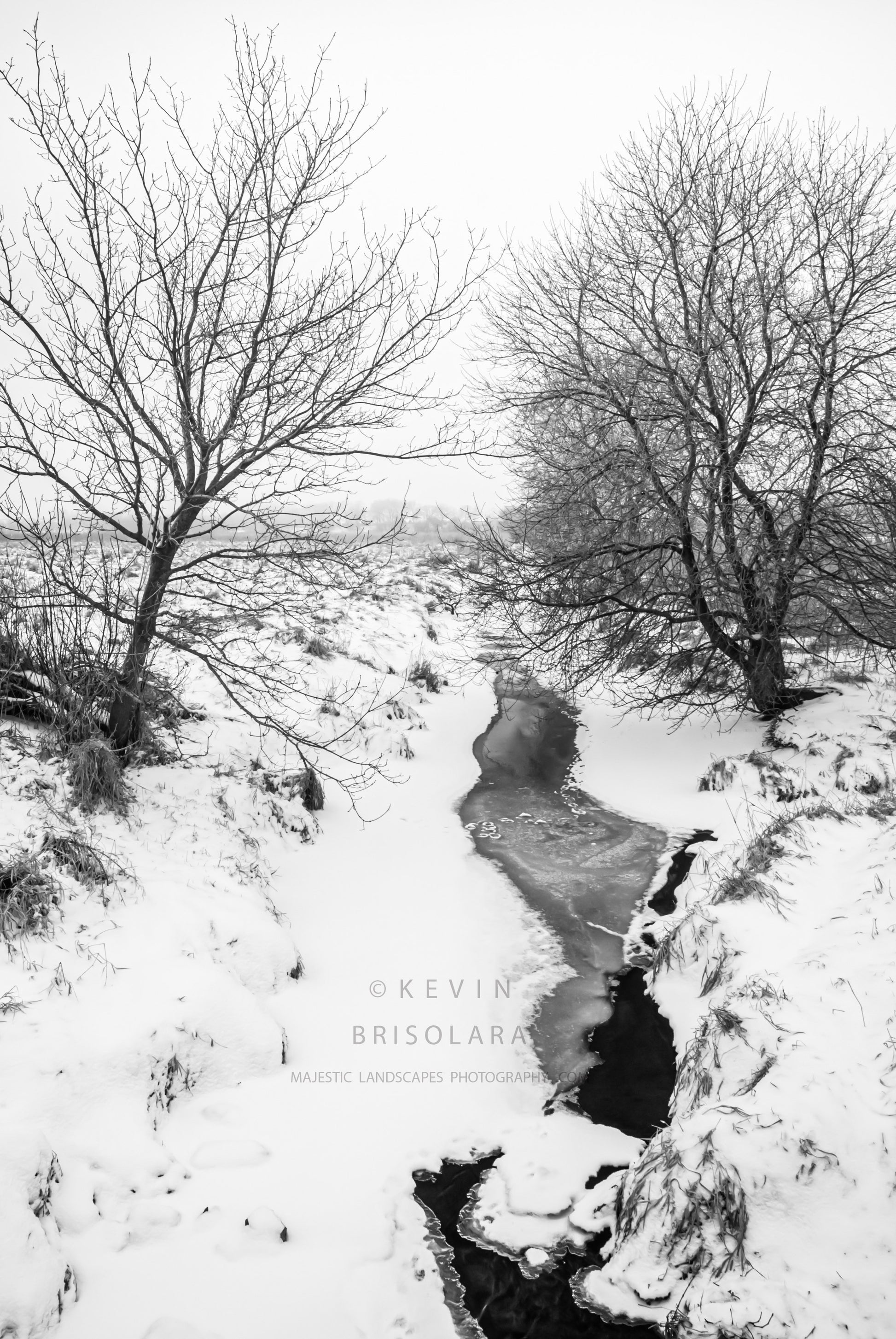 A beautiful and majestic February morning along eakin creek west had been an inspiring scene with the freshly fallen snow blanketing this prairie landscape at Wildflower Park in Northern Illinois. (420-273)