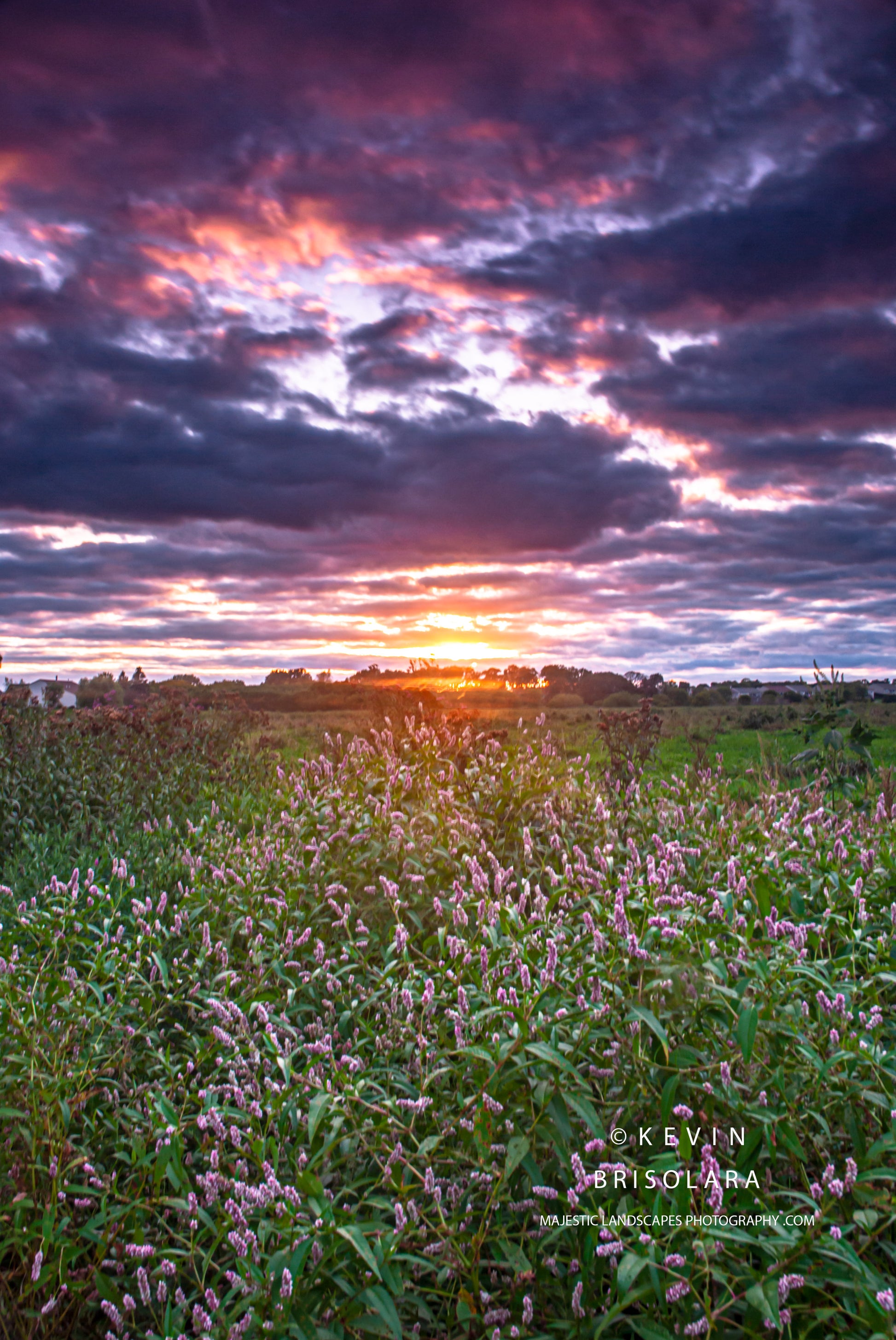 A majestic sunset appears with wildflowers of smartweed filling in this beautiful scene at Wildflower Park. (598-36)