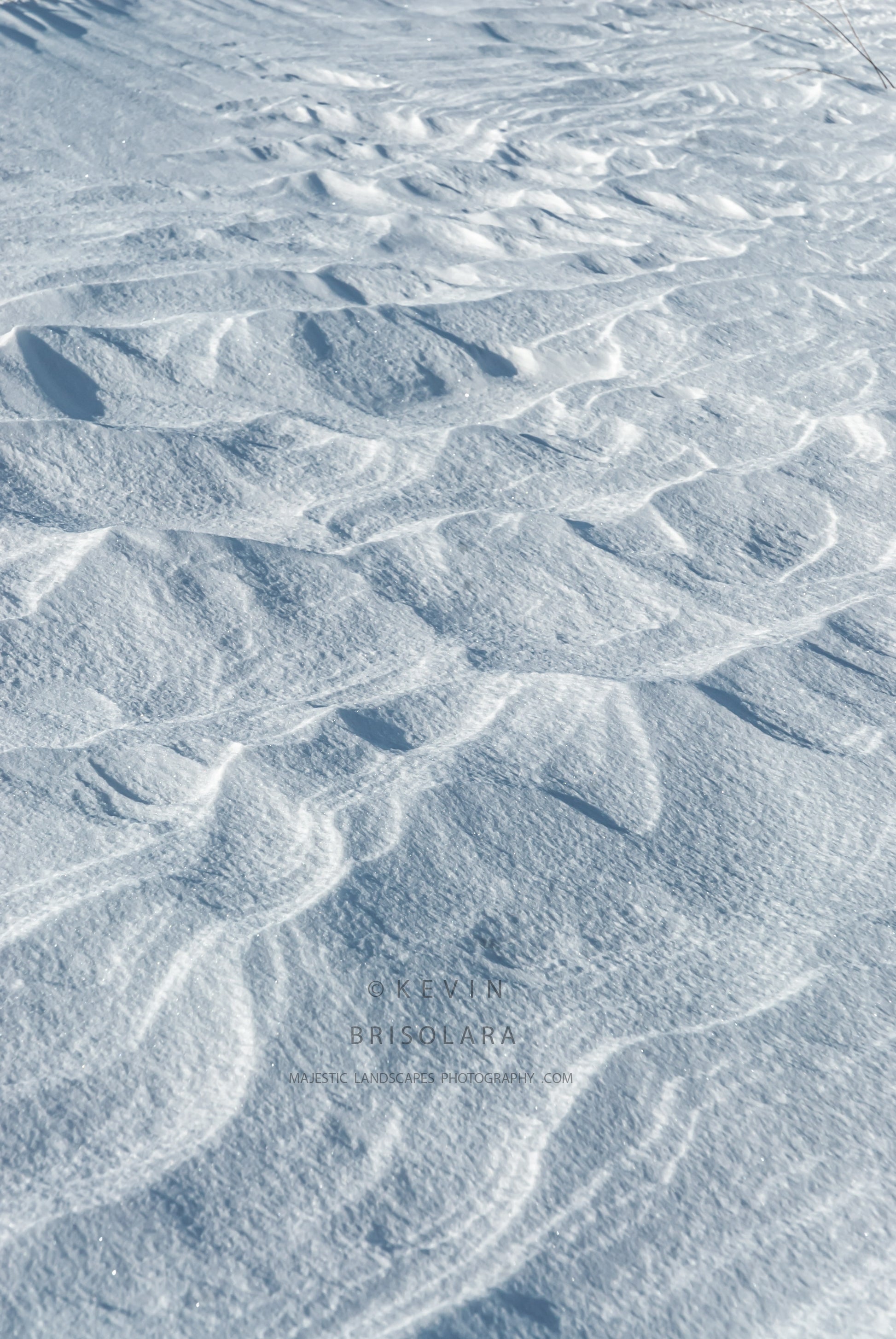 After receiving a couple inches of snow, I grabbed my camera gear and set out to photograph the recent snowfall in its purest form. As I was looking for something to catch my eye, I noticed these windswept patterns across the prairie landscape and thought that they were very interesting with their shapes and textures.  (419-11)